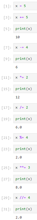 x *= 2 # x에 2를 곱한 후 할당