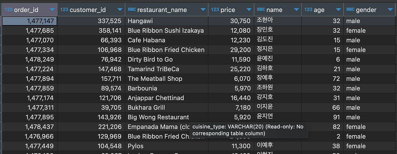 food food_orders a left join customers b on a.customer_id=b.customer_id